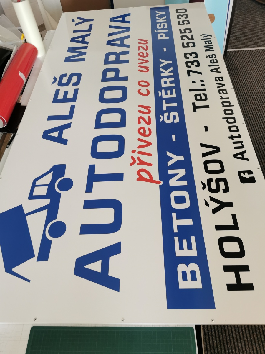 Vyrábíme poutače vhodné pro umístění na fasády budov, zábradlí, ploty..